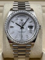 Introducing the Rolex Day-Date 228349RBR (Year: 2022) – a testament to timeless design and precision. This piece features a silver dial, white gold bracelet, and 40 mm white gold case, making it a statement piece that effortlessly captures attention.